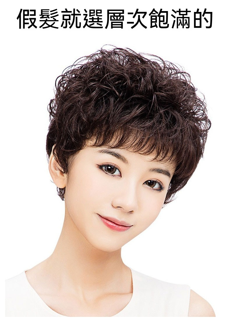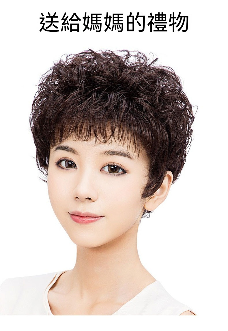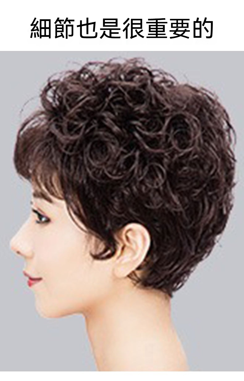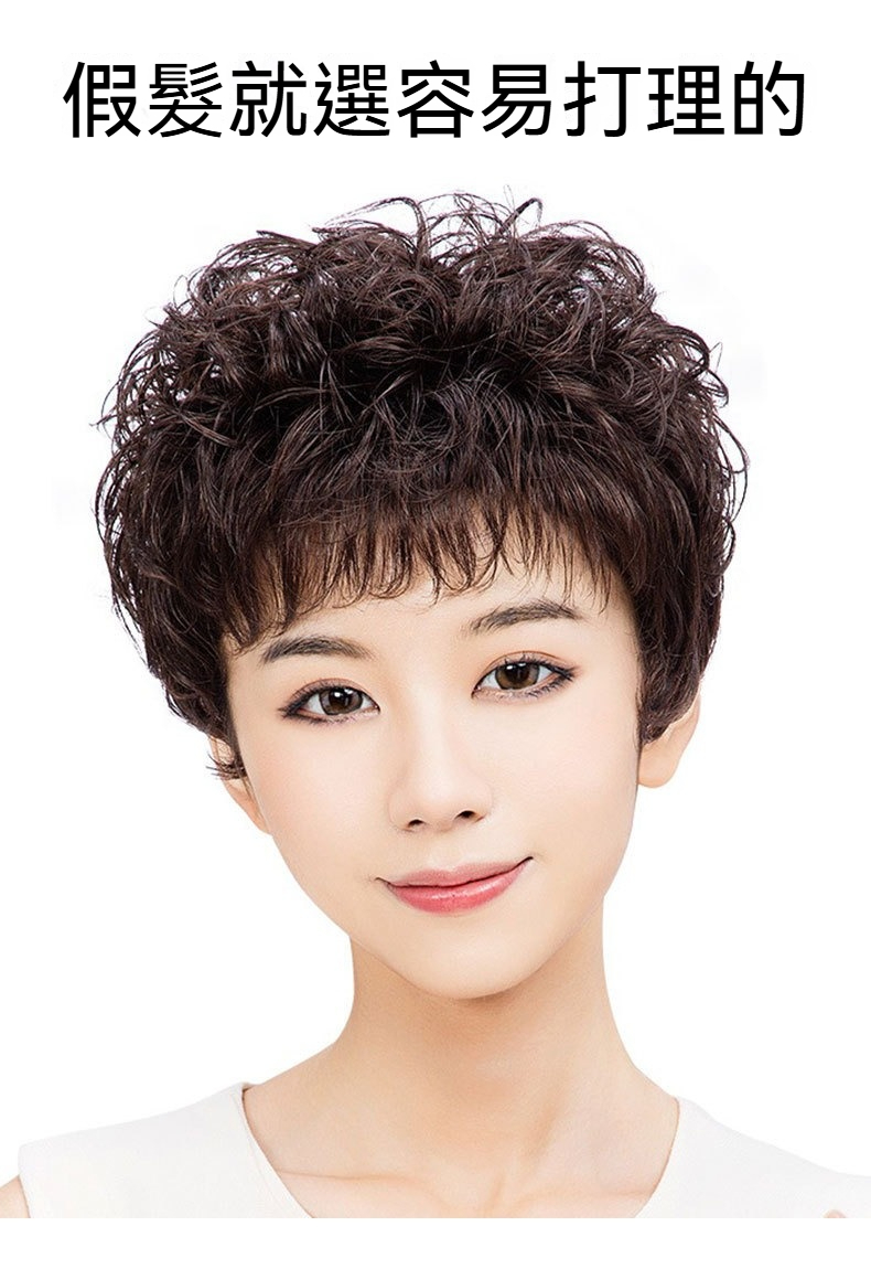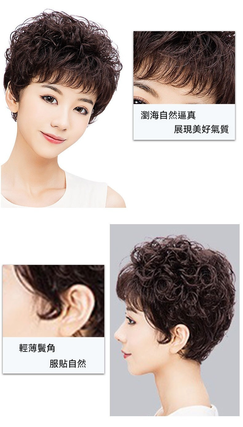 假髮 整頂假髮 真髮假髮 捲髮假髮 短髮假髮 全套頭假髮 遮白髮 媽媽燙假髮 自然假髮 真人髮絲 透氣假髮 增髮量336