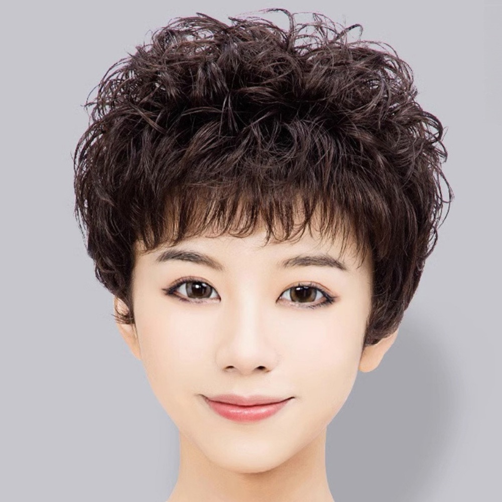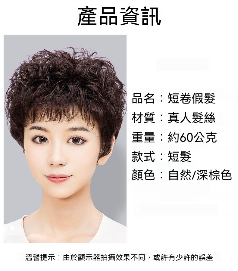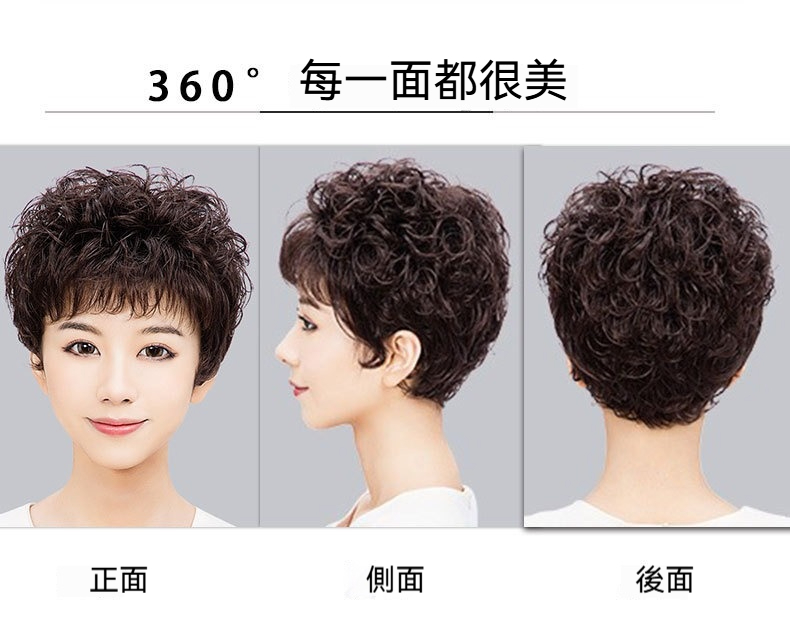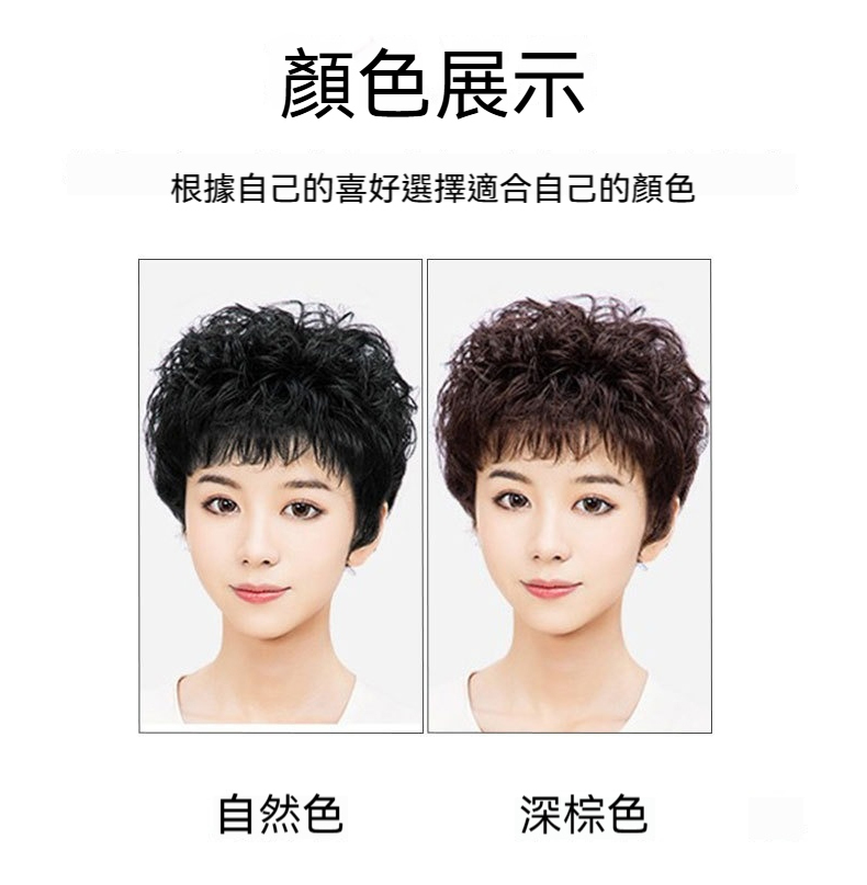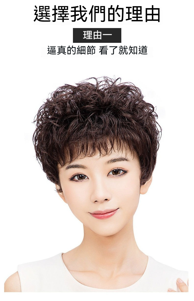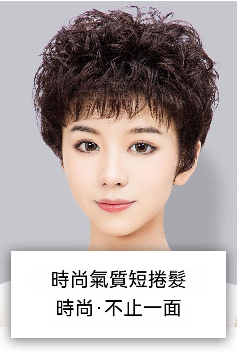 假髮 整頂假髮 真髮假髮 捲髮假髮 短髮假髮 全套頭假髮 遮白髮 媽媽燙假髮 自然假髮 真人髮絲 透氣假髮 增髮量336
