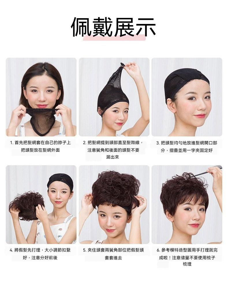 👜商品尺吋:整頂假髮(內網彈力網可調節鬆緊)長度約17公分(頭頂到髮尾)
