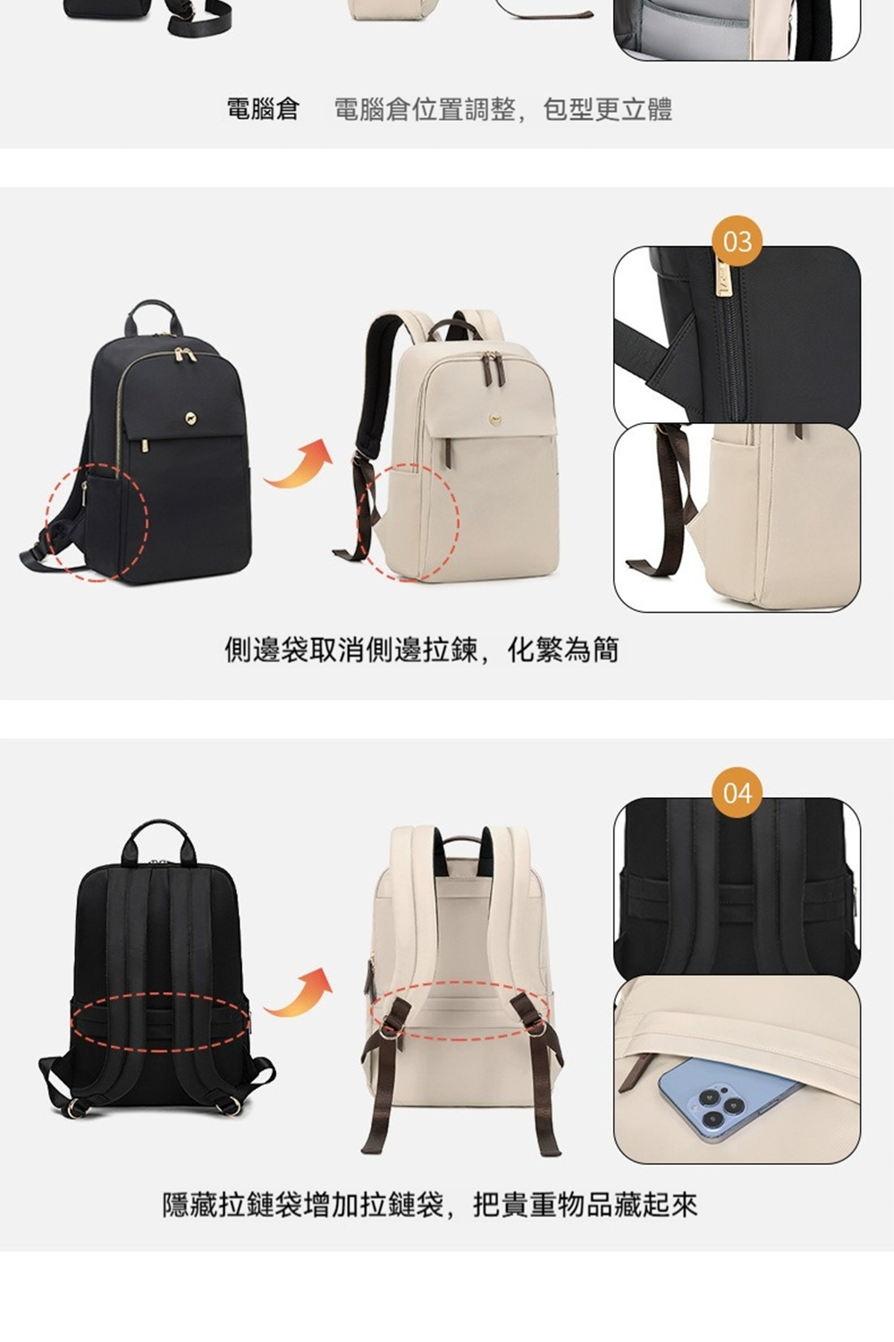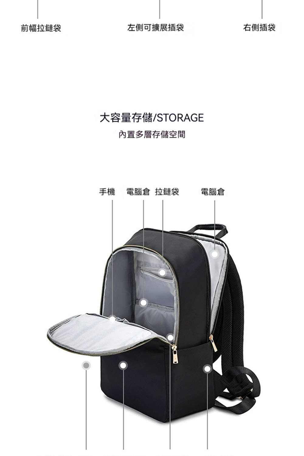 👜結構:主袋、拉鍊內貼袋、內貼袋*3、內側帶、外側袋*2、前拉鍊袋、電腦倉