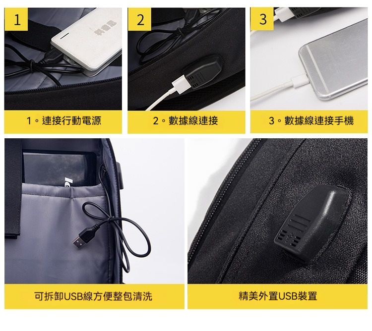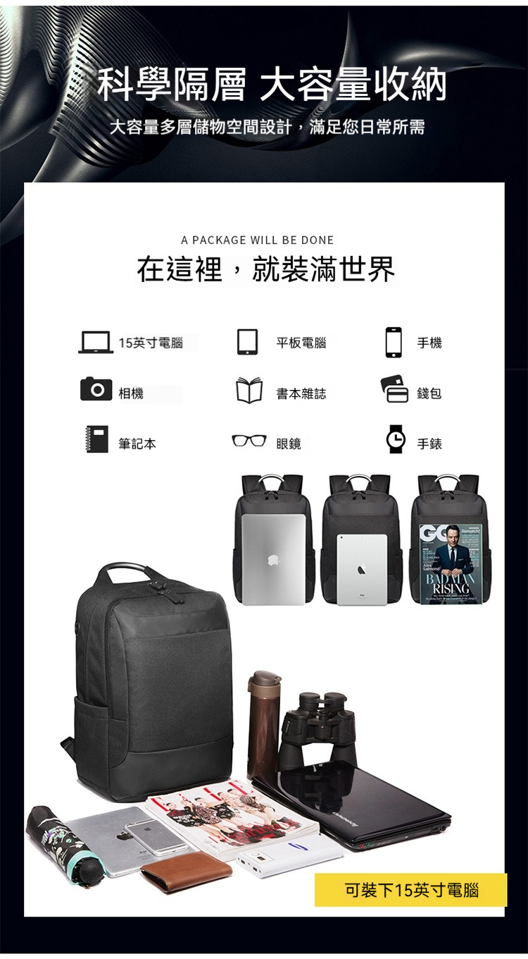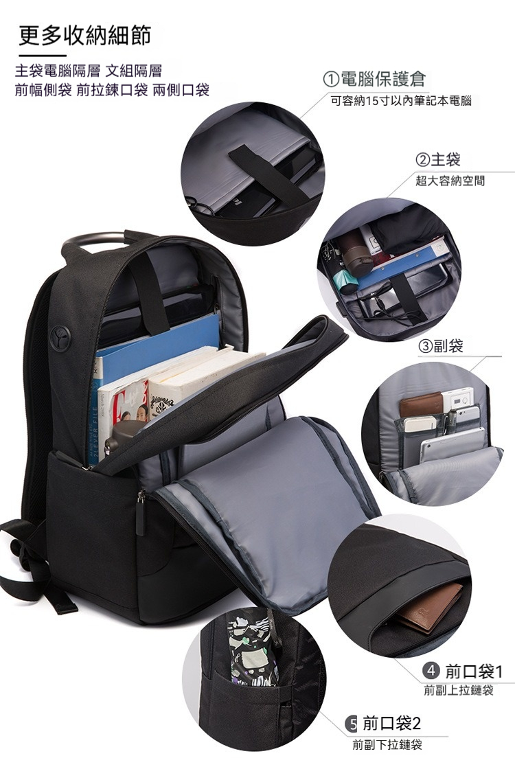 👜結構:主袋、電腦插袋、副袋、內貼袋*3、側袋*2、USB插孔