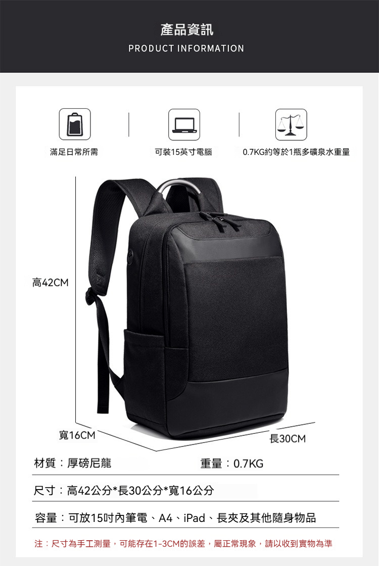 👜容量:可放15吋內筆電、A4、iPad、長夾及其他隨身物品