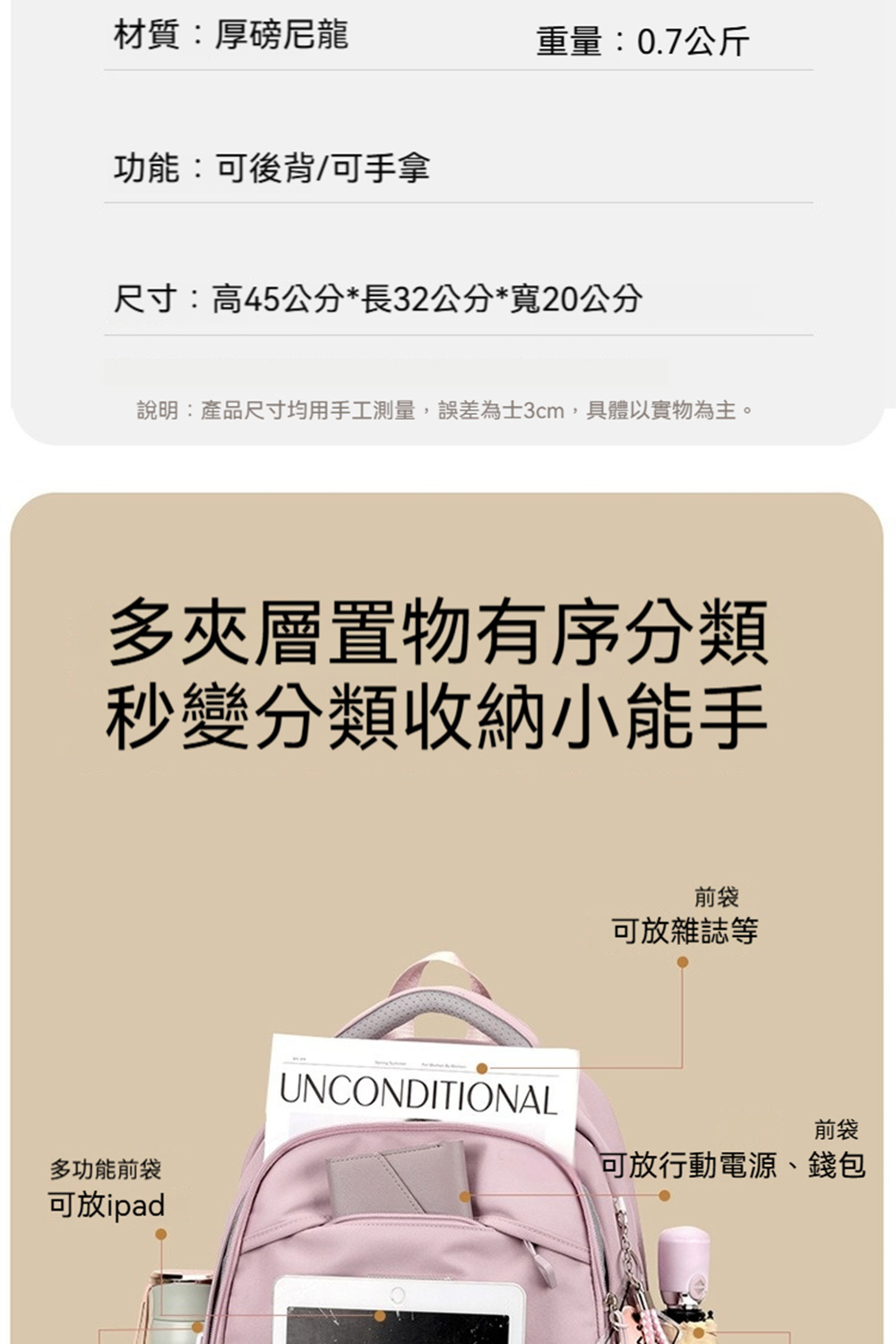 👜容量:可放14吋筆電、A4、iPad、長夾及其他隨身物品