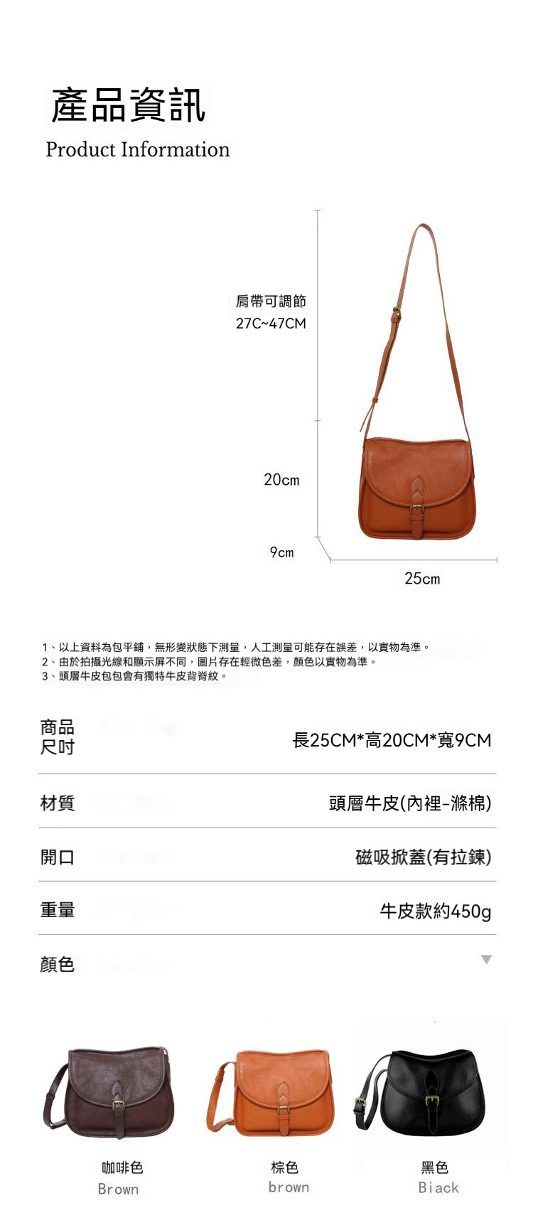 👜商品尺吋:長25CM*高20CM*寬9CM、背帶寬約1.7CM(可調節27~47CM)