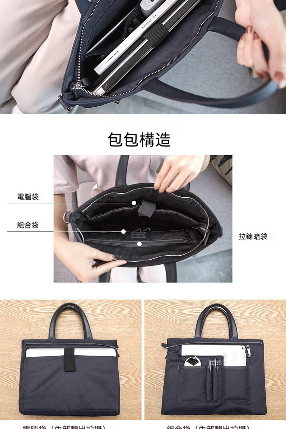 👜結構:主袋、緩衝隔層、內貼袋*2、筆插*2、拉鍊內貼袋、後幅拉練貼袋
