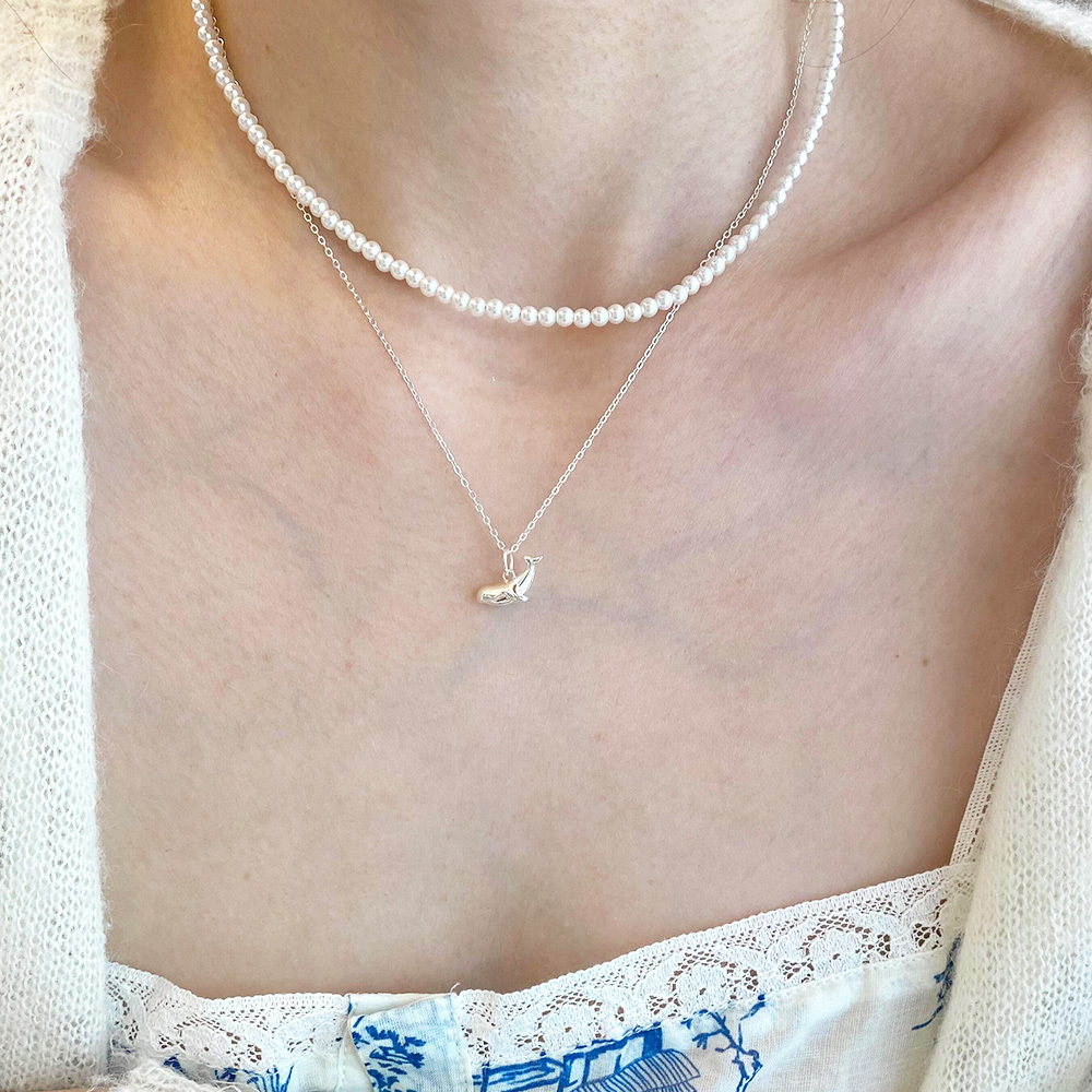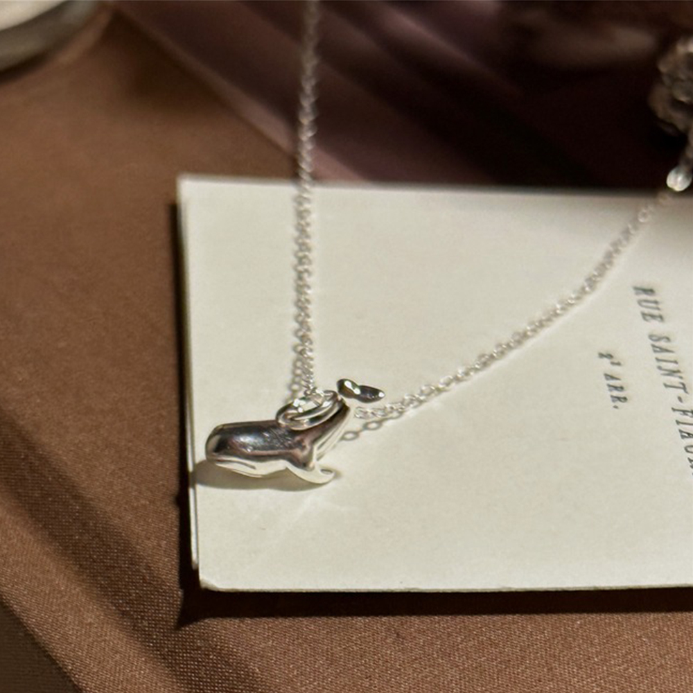 925 純銀項鍊 項鍊女 簡約ins風 項鍊 女生項鍊 通體純銀 鎖骨鍊 鯨魚吊飾 吊墜 18k 金項鍊 送閨蜜 323