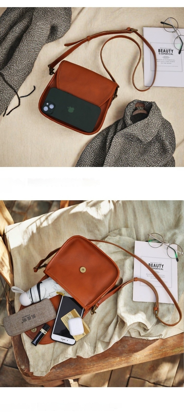 👜容量:可裝手機、行動電源、中短夾、口紅等隨身物品