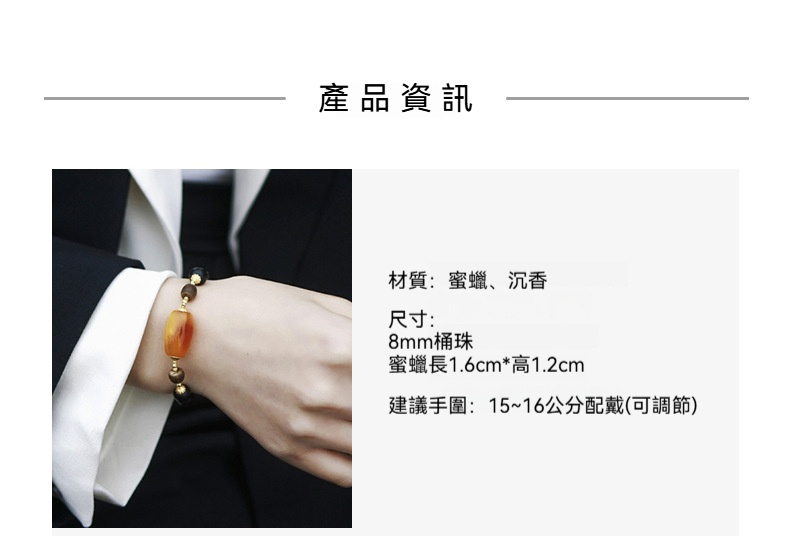 👜商品尺吋:8MM桶珠、手圍建議15~16公分配戴(可調節)、蜜蠟長1.6CM*高1.2CM