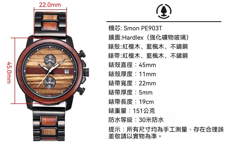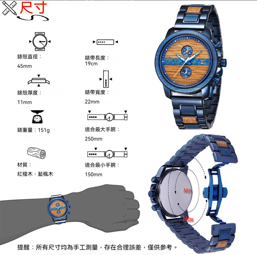 👜商品尺吋:錶面直徑45mm,錶面厚度11mm,錶帶寬22mm,錶帶長度約19cm