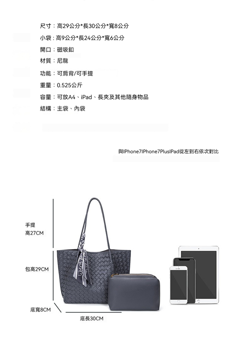 👜容量:可放A4、iPad、長夾及其他隨身物品