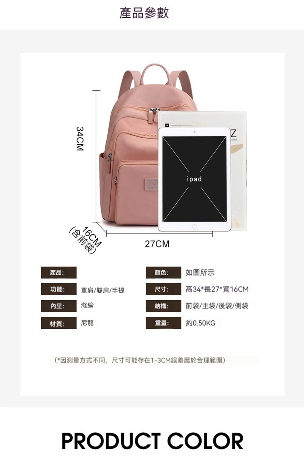 👜容量:可放A4、iPad、長夾及其他隨身物品