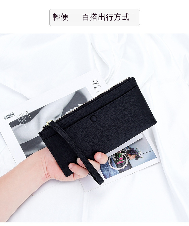 錢包 手拿包 皮夾 長夾 真皮手拿錢包 薄錢包 拉鍊錢包 大容量皮夾 輕便手機包 黑色錢包 招財錢包 女生禮物 132