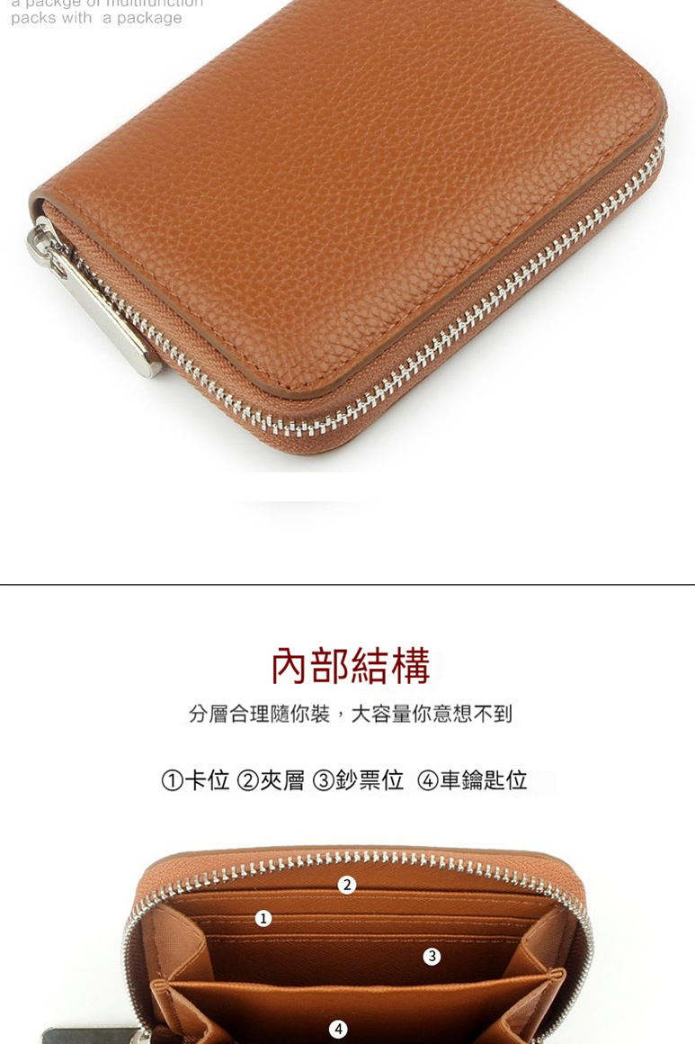 👜結構: 4卡位 2鈔票位 2個夾層 一個車鑰匙位