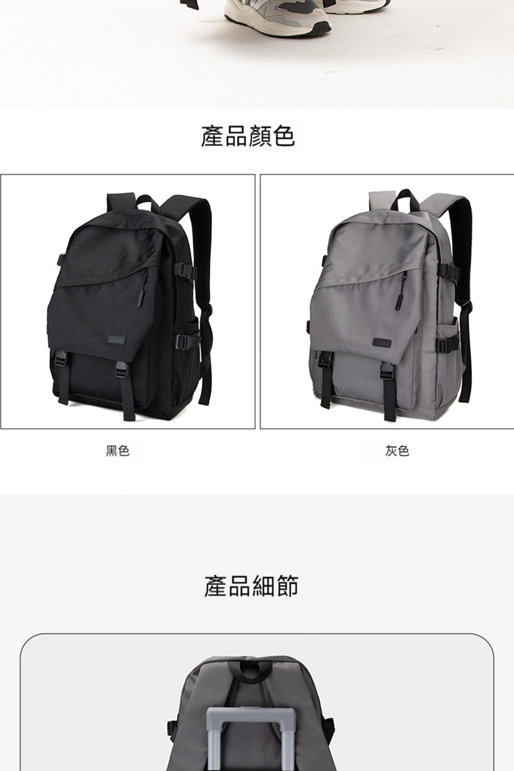 👜結構:主袋、內貼網袋*2、拉鍊內貼袋、緩衝格層、前置拉鍊袋、前幅拉鍊袋、兩側插袋、行李桿固定帶