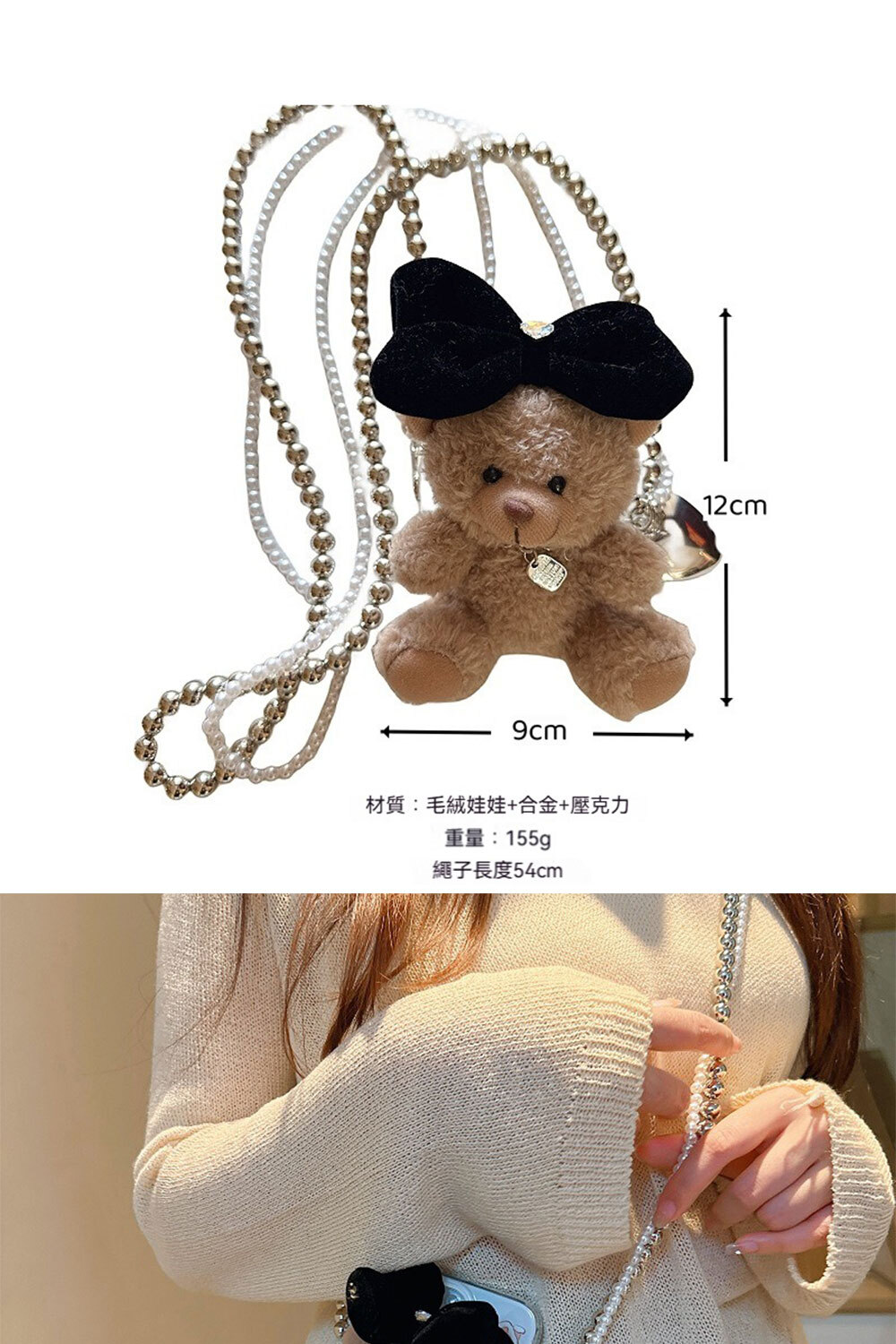 👜材質:毛絨娃娃+合金+壓克力