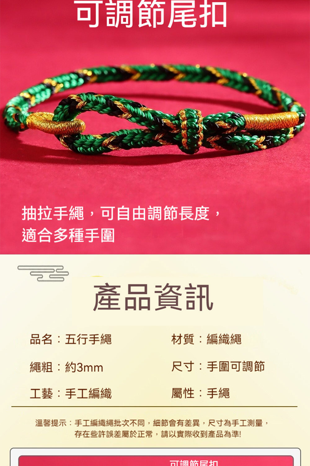 👜 商品尺吋:繩粗約0.3公分,可調節手圍