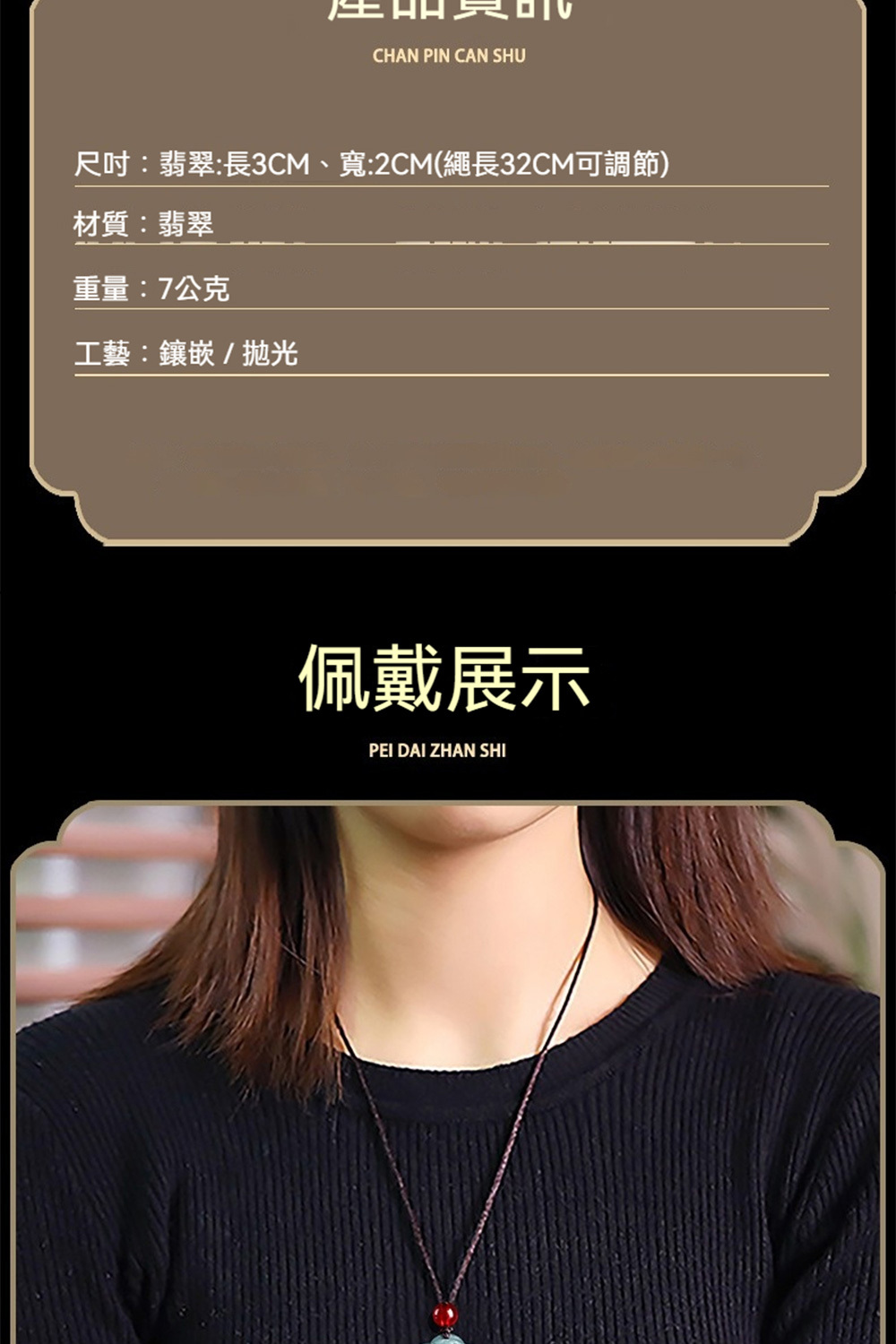 ✨ 商品尺吋:翡翠:長3CM、寬:2CM(繩長32CM可調節)
