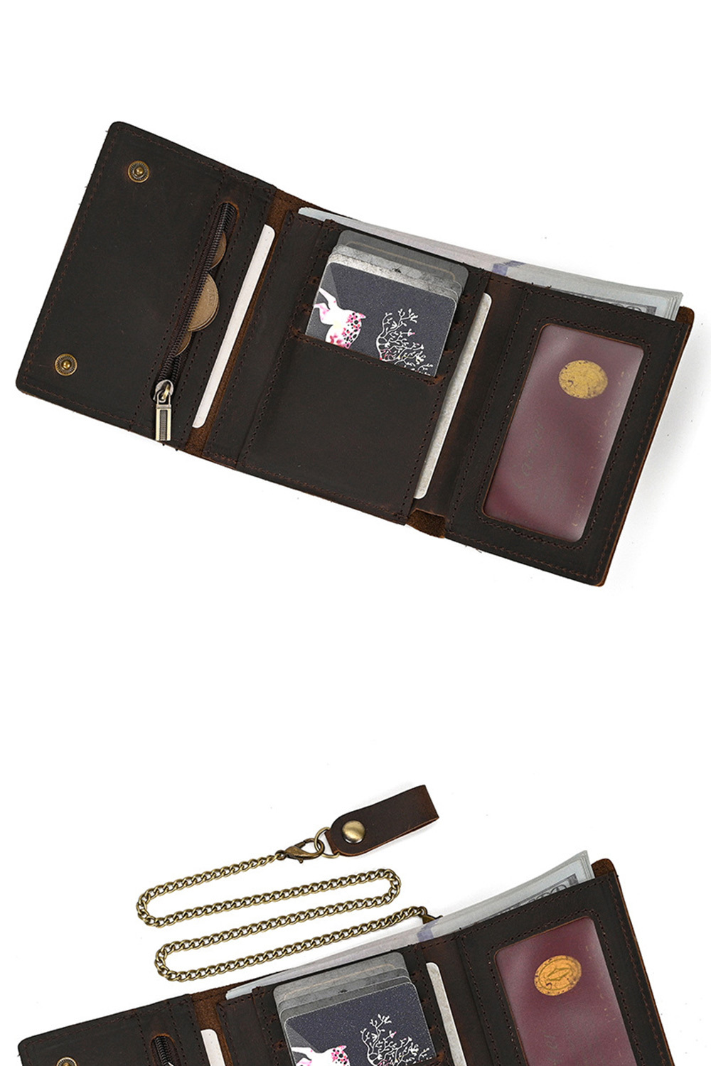 👜容量 / 結構:大鈔位、卡片位7、相片位、零錢拉鍊位,附鍊條掛勾