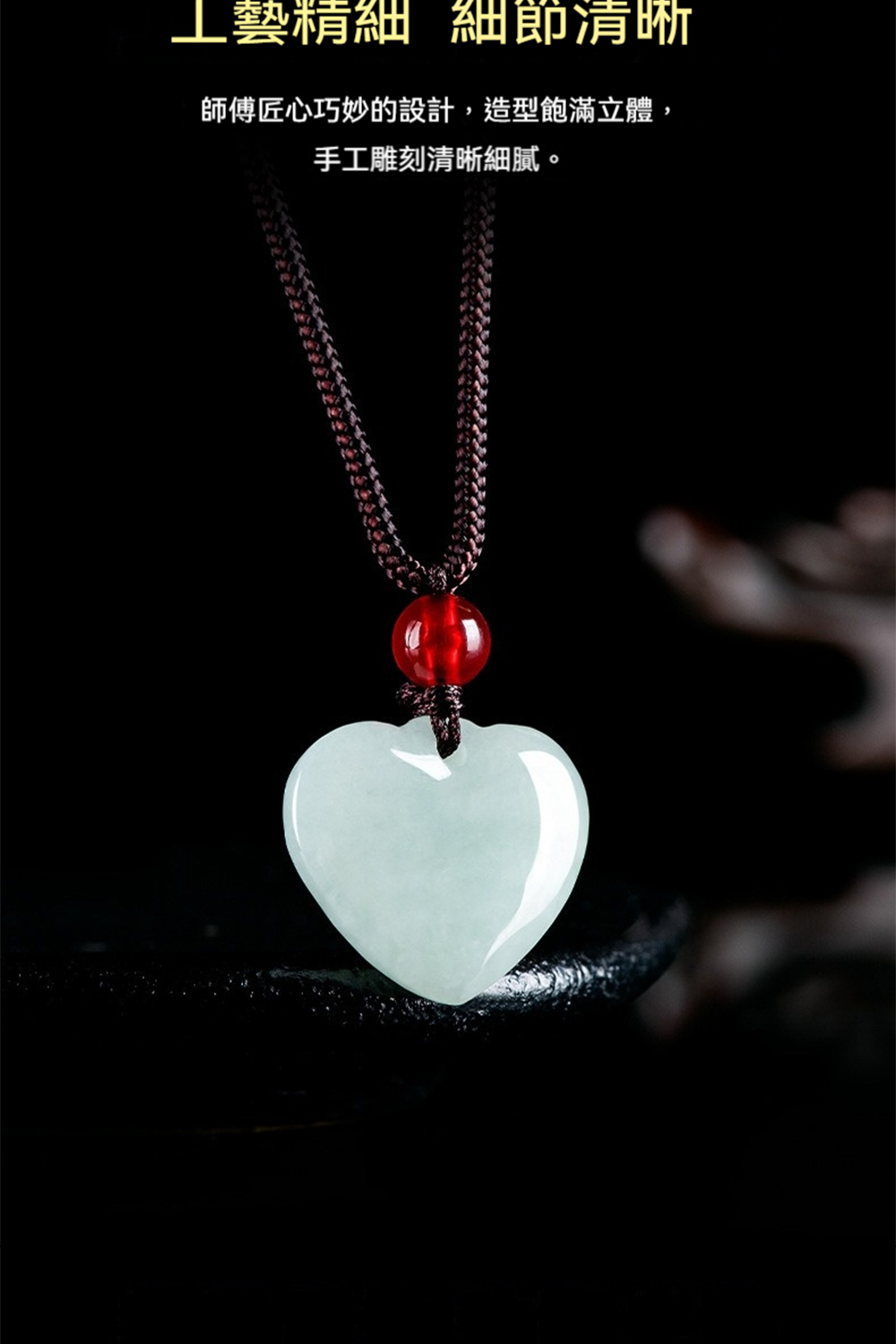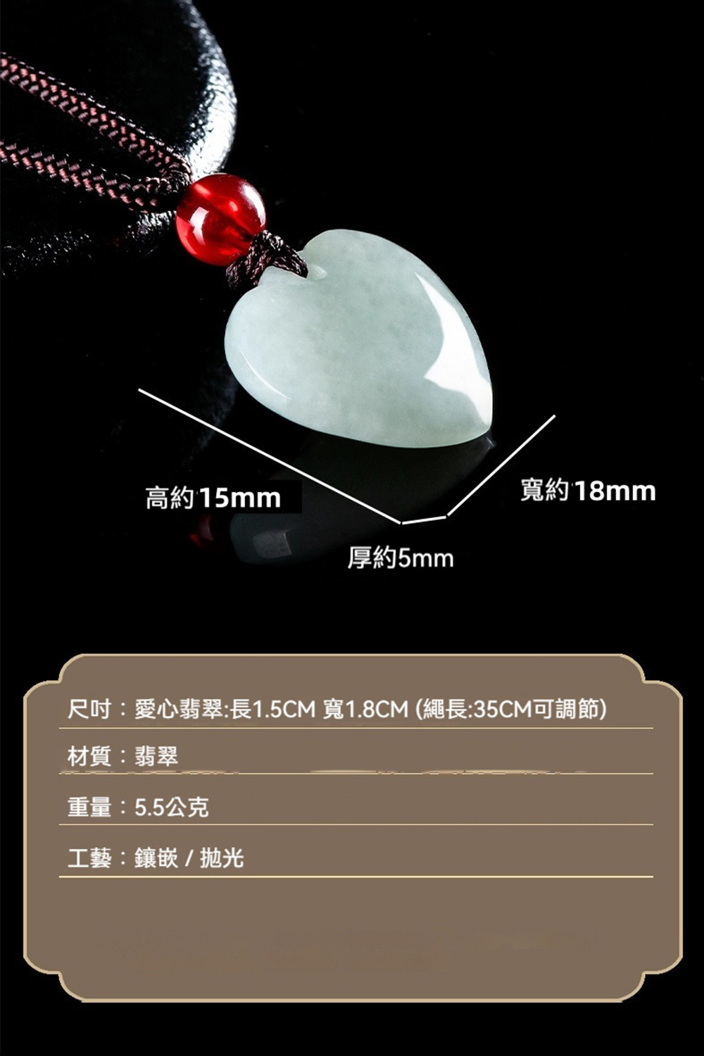✨ 商品尺吋:愛心翡翠:長1.5CM 寬1.8CM (繩長:35CM可調節)
