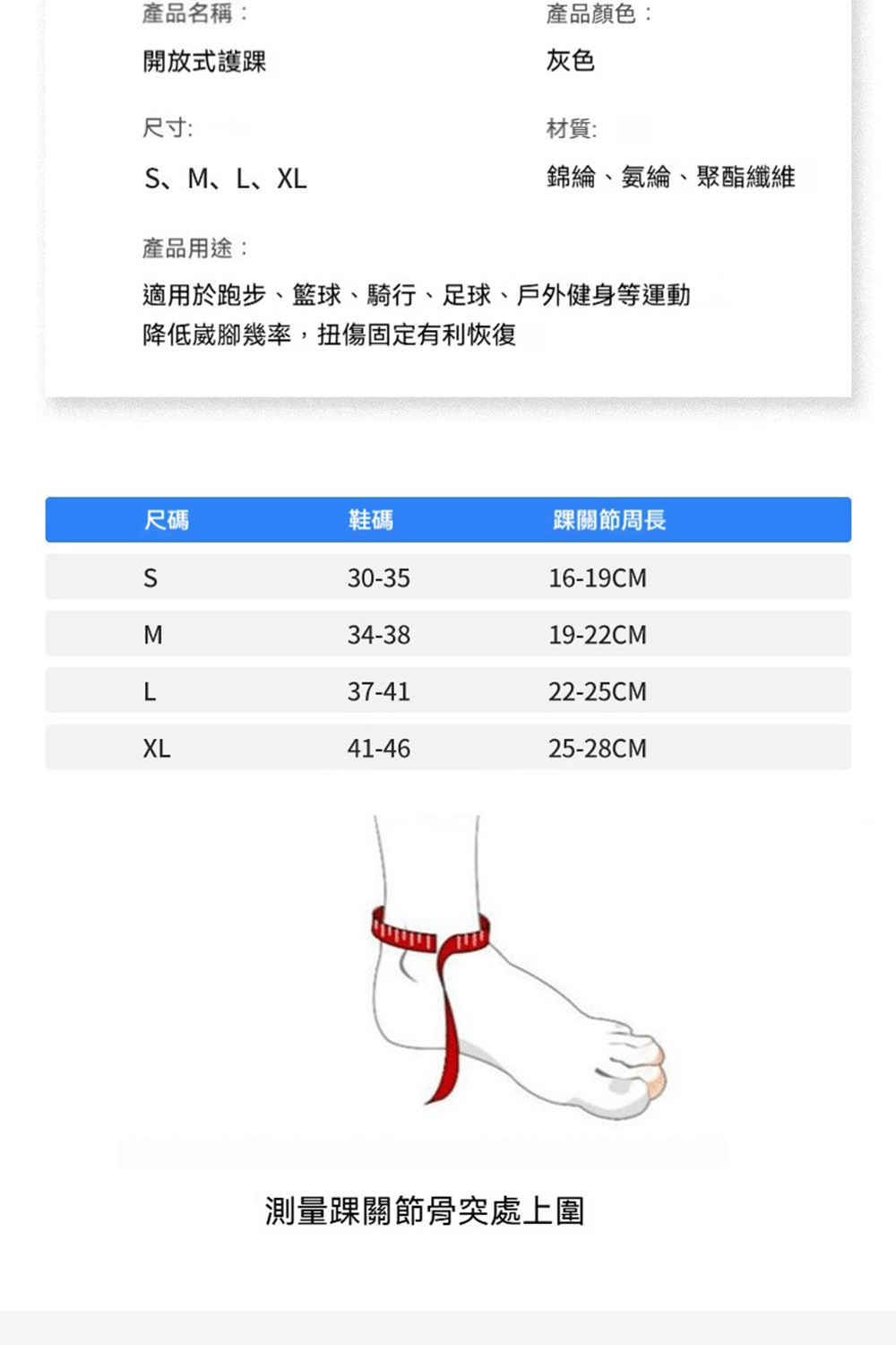 M/適合腳長22-24公分,踝關節周長19-22公分
