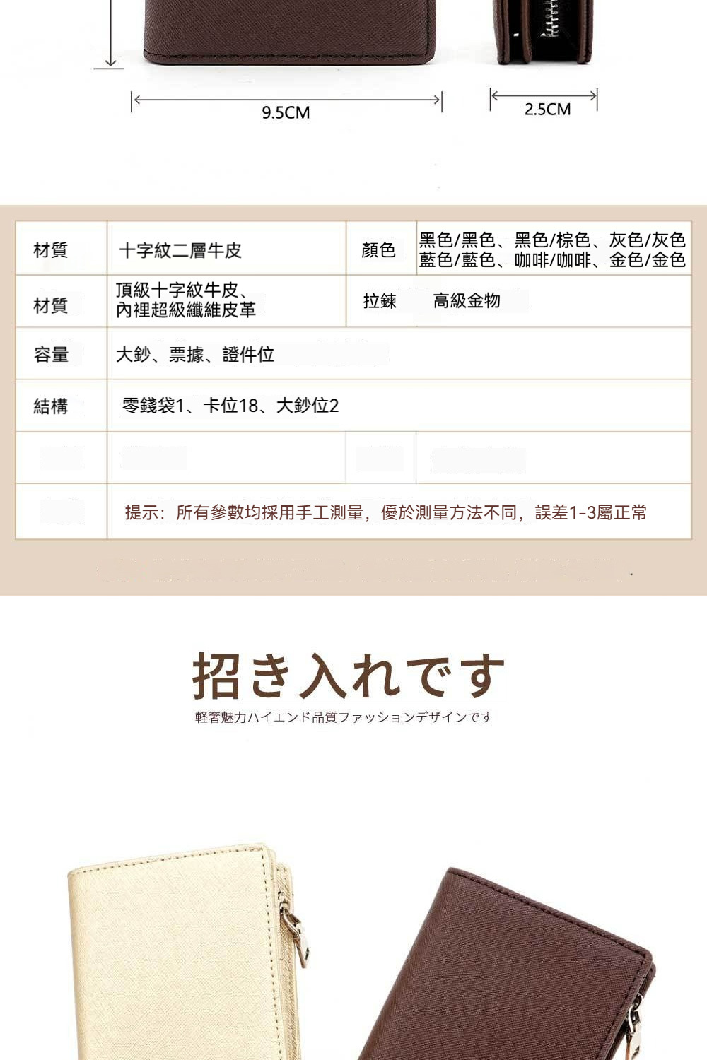 👜容量 / 結構:大鈔位*2、卡片位*10、相片位、夾層*4、拉鍊零錢位