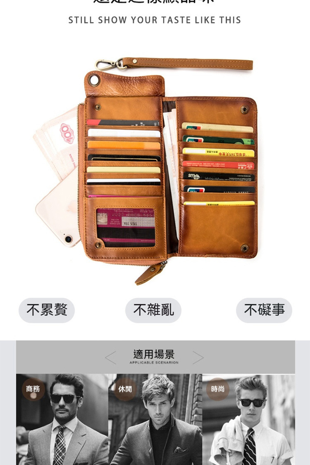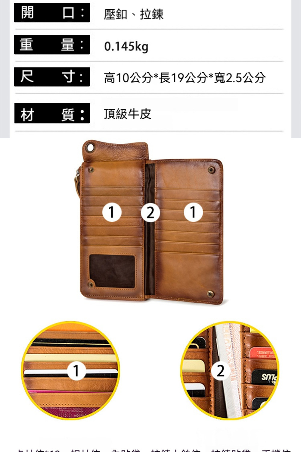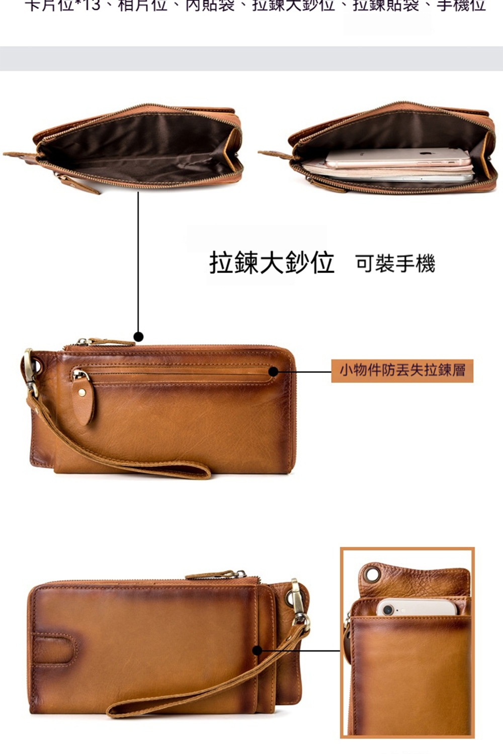 👜容量/結構:卡片位*13、相片位、內貼袋、拉鍊大鈔位、拉鍊貼袋、手機位
