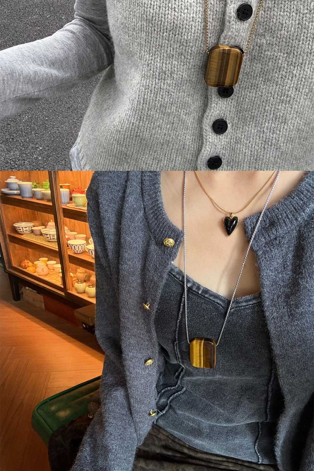 虎眼石長3CM*寬0.5CM*高4CM,鍊長33CM
