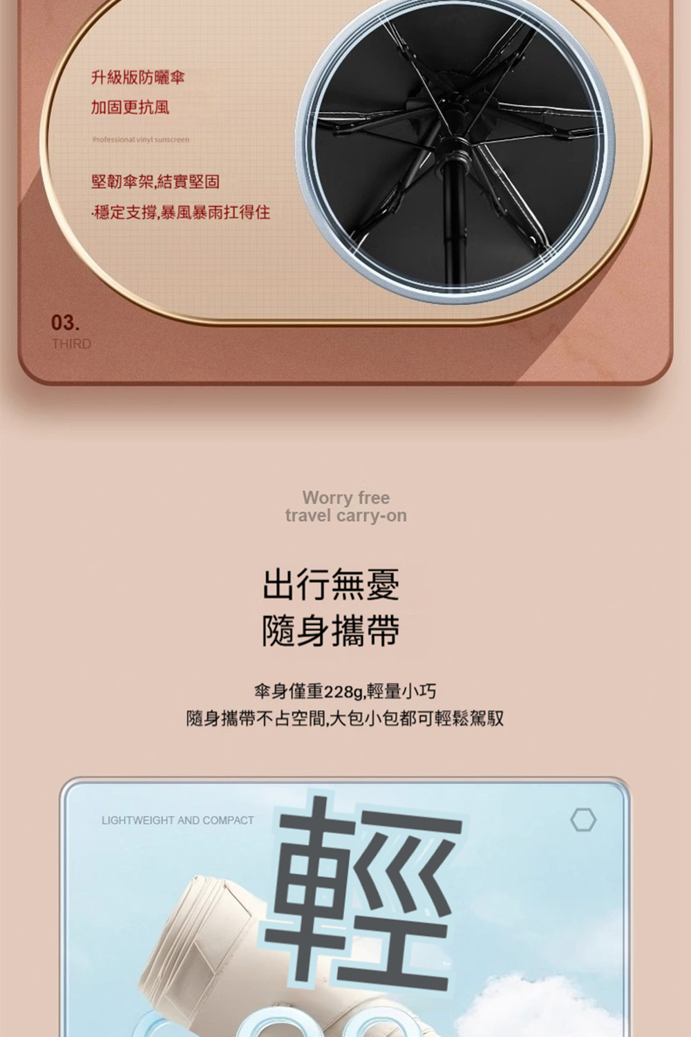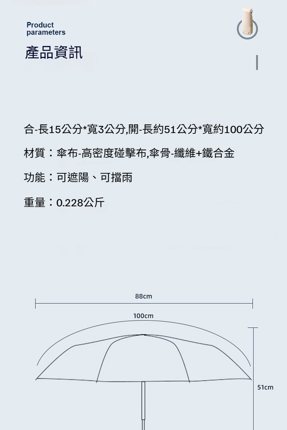 👜材質:傘布-高密度碰擊布,傘骨-纖維+鐵合金