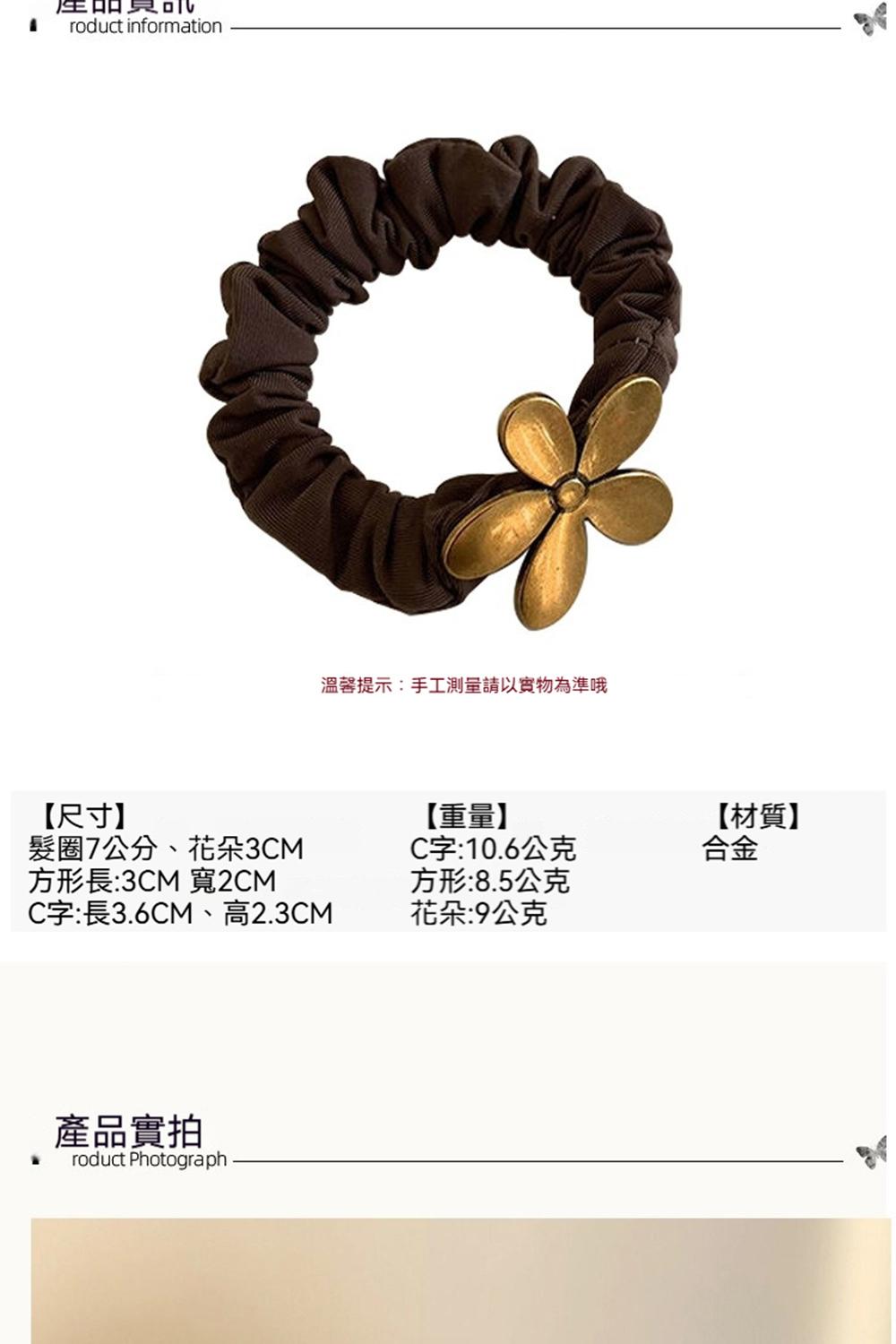 👜尺寸:髮圈7公分、花朵3CM、方形長:3CM 寬2CM、C字:長3.6CM、高2.3CM