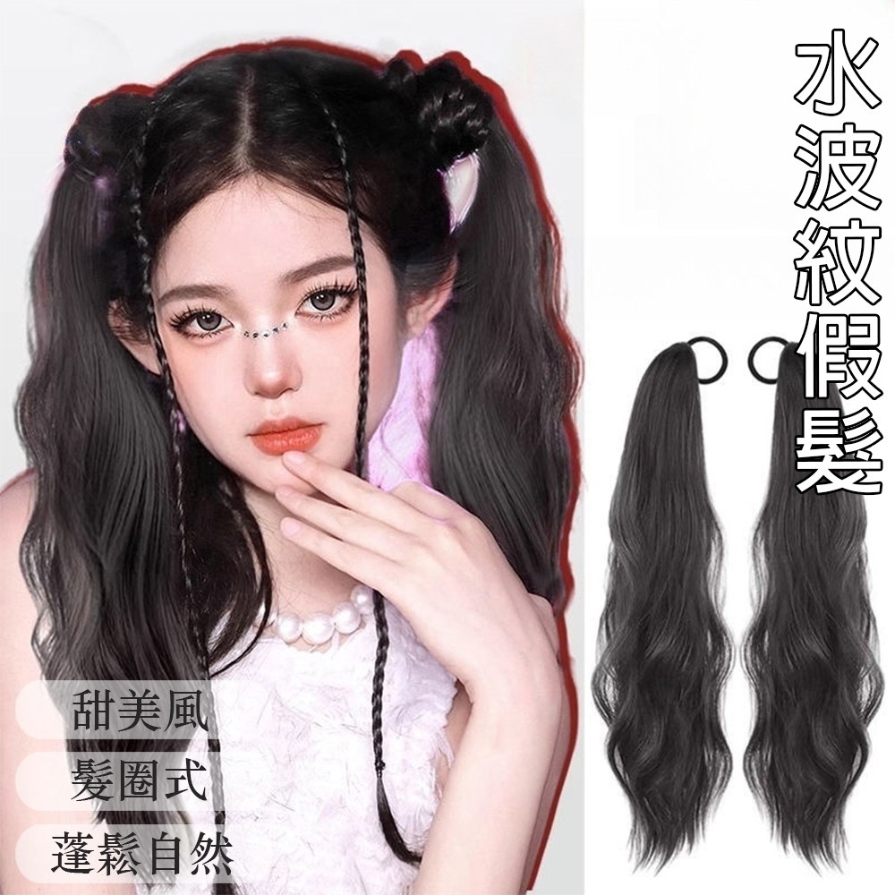 假髮 女馬尾 假髮馬尾 假馬尾 髮圈式馬尾 波浪假髮 50公分馬尾 髮圈馬尾 高馬尾假髮 甜妹長髮 水波紋 禮物 044