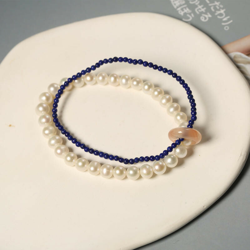 ✨ 材質:天然淡水珍珠、青金石、冰飄南紅瑪瑙