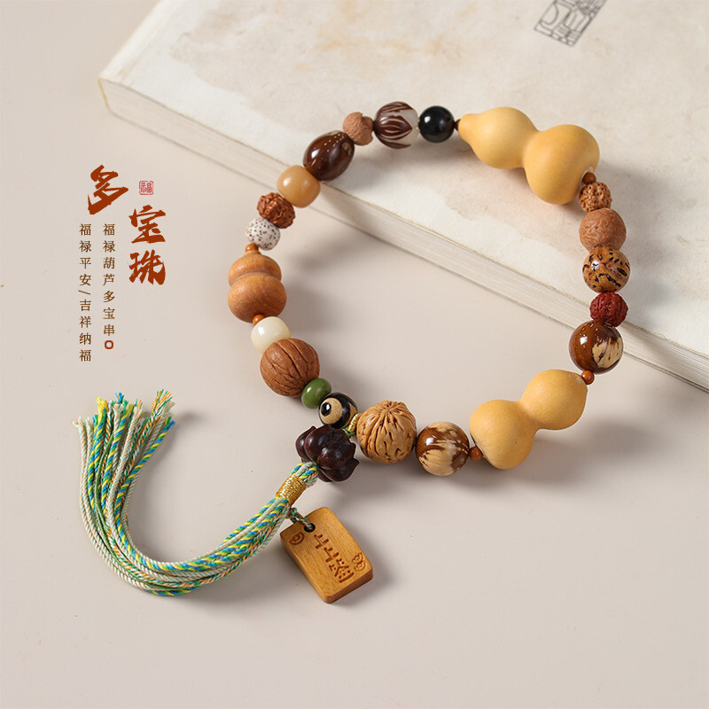 附專用飾品收納盒、禮品袋,送人超有質感、有面子✨ 商品尺吋:手圍約32公分、每顆珠徑大小都不同✨ 材質:炭燒菩提、小金剛、鳳眼菩提、天然葫蘆✨ 重量:咕雞:23公克、福祿:32公克✨ 工藝:手工編織