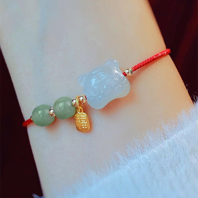 ✨ 商品尺吋:老虎約1.9cm*1.8cm,玉珠約0.6cm*0.8cm,手圍內圍最長18.5cm 可調節