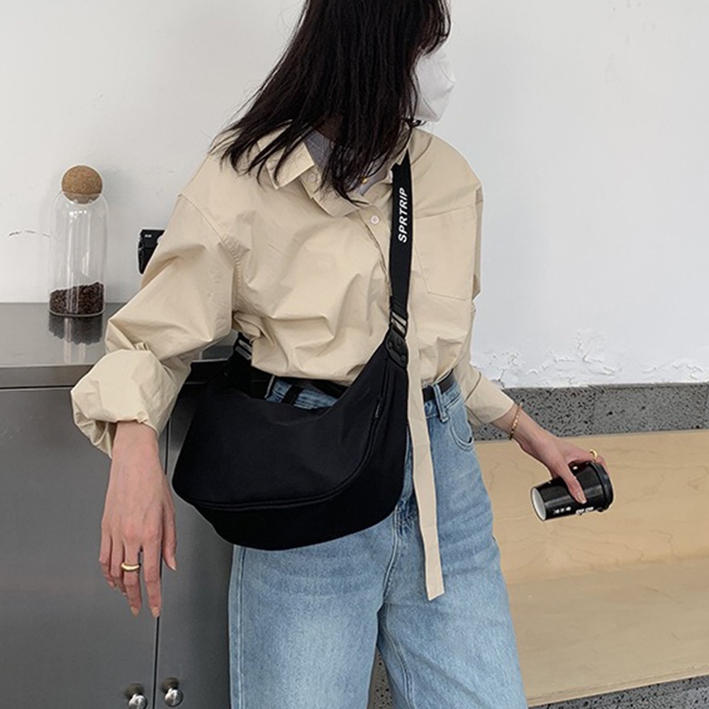 尼龍包 馬鞍包 側背包 單肩包 斜背包 休閒 大容量包包 大容量側背包 黑色側背包 白色包包 韓國包包 情侶包包 560