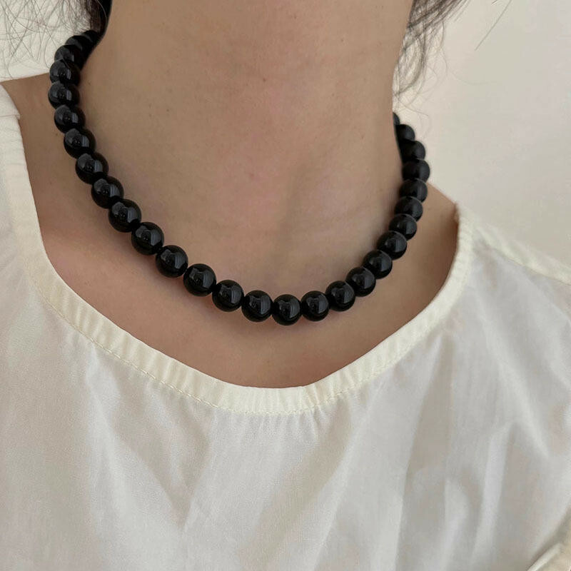 項鍊 頸鏈 女生項鍊 黑瑪瑙 串珠項鍊 925 純銀 簡約ins風 個性項鍊 韓國飾品 高級感 銀元寶 小禮物 330