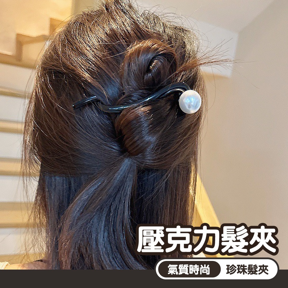 一字夾 壓克力髮夾 頭飾 女生髮夾 後腦勺盤髮 髮夾 珍珠髮夾 盤髮夾 扭扭夾 髮飾 夾子 造型髮飾 配飾 氣質 095